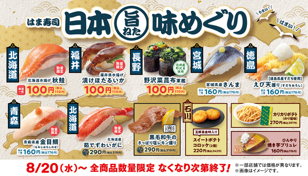 はま寿司は8月20日から「はま寿司 日本旨ねた味めぐり」を全国の店舗で開催します。