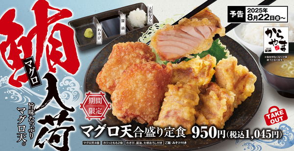 からあげ専門店「からやま」は、8月22日より「マグロ天合盛り定食」など「マグロ天」各種を期間限定で販売します。