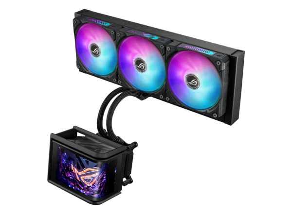 新製品「ROG RYUO IV SLC 360 ARGB」は、6.67インチの2K AMOLED L字型ディスプレイをCPUヘッドに採用し、パソコン内部の美しさをさらに強調するデザインとなっている。背の高いメモリーとの干渉を避けることができるスライド可能なフレーム設計も施されている。