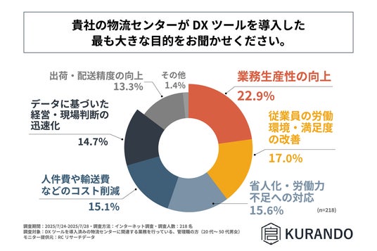株式会社KURANDO(本社:東京都品川区、代表取締役:岡澤 一弘)は、DXツールを導入済みの物流センターに関連する業務を行っている管理職の方を対象に「物流センターにおけるDXツールの導入効果と課題」に関する調査を実施しました。この調査から、DXツールを導入済みの物流センターにおけるDXツールの導入状況や効果、課題などが明らかになりました。