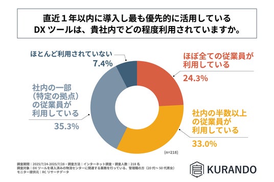 物流センターに関わる管理職の約4割が、直近1年以内に導入したDXツールに対して期待していたほどの効果を実感できていない!KURANDOが物流センターにおけるDXツールの導入効果と課題に関する調査実施!