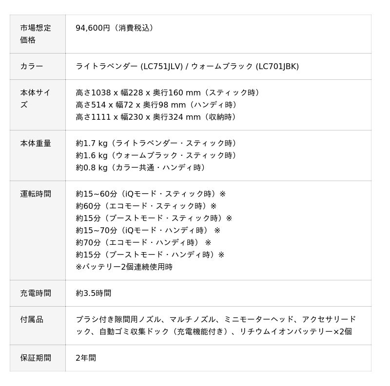 (LC751JLV、LC701JBK:自動ゴミ収集ドック搭載モデル)