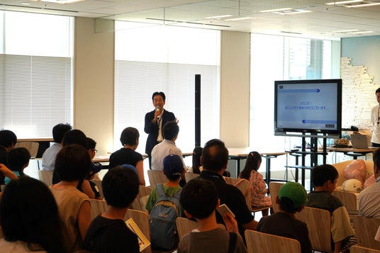 最高気温が35℃を超す猛暑日の中、当日は27家族約90名の参加者が東京本社にお集まりいただきました。