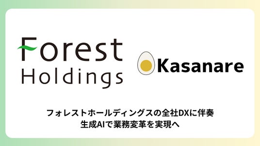 カサナレ株式会社(本社:東京都渋谷区、代表取締役:安田 喬一、以下「カサナレ」)は、株式会社フォレストホールディングス(本社:福岡市博多区、代表取締役社長:吉村 次生、以下「フォレストホールディングス」)の全社DX推進において、生成AI活用を軸としたパートナーシップを締結しました。