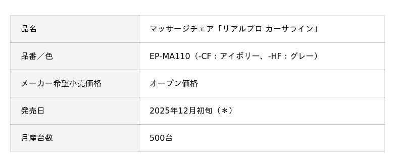 ▼[プレスリリース]マッサージチェア「リアルプロ カーサライン」(EP-MA110)を発売(2025年8月21日)