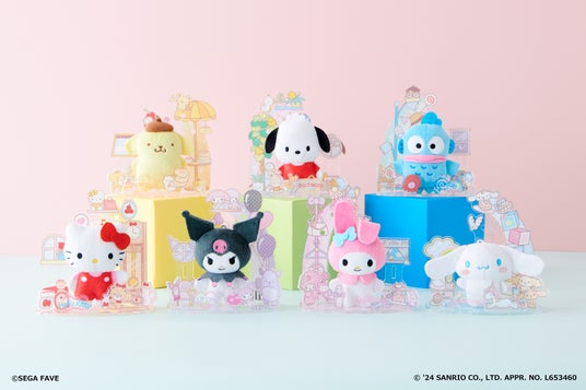 『アクぬい サンリオキャラクターズ』は組んで・立たせて・飾れる、ぬいぐるみとアクリルを立体的にディスプレイできる商品で、アクリルスタンドと、ぬいぐるみを組み合わせた新しいカテゴリーのアイテムです。本商品はキャラクターのぬいぐるみ1体と、キャラクターにまつわる背景や小物のアクリルパーツ4~5点が一式セットになっており、豊富なアクリルパーツとぬいぐるみを自由にレイアウトして飾ることができます。いままでにないデザインの各パーツを組み合わせることで、レイアウトを自由自在にアレンジでき、お気に入りのキャラクターの3次元の世界観を
