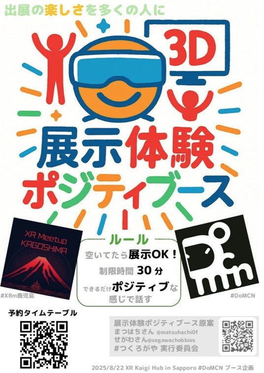 また、会場では「XRm鹿児島 & 展示体験ポジティブース supported by DoMCN」と題して、各コミュニティ活動から誕生した作品の展示を行います。