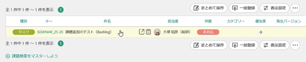 標準設定の場合、送信するメールの件名が「課題名」に、本文が「課題の詳細内容」に登録され、その他の項目は先ほどの画面で設定した内容となります。まずはテストメールを手作業で送信してみて、想定したとおりに課題が新規登録されることを確認しましょう。