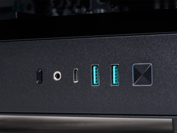 特に高さがコンパクトで、よくあるミドルタワーやフルタワーのゲーミングPCが450~550mm程度はある中で、3分の2程度まで抑えられている。デスク上にPCを置く際などは、PCケースが高いと圧迫感があり、持ち運びもしにくいので、この高さを抑えた筐体はありがたい。