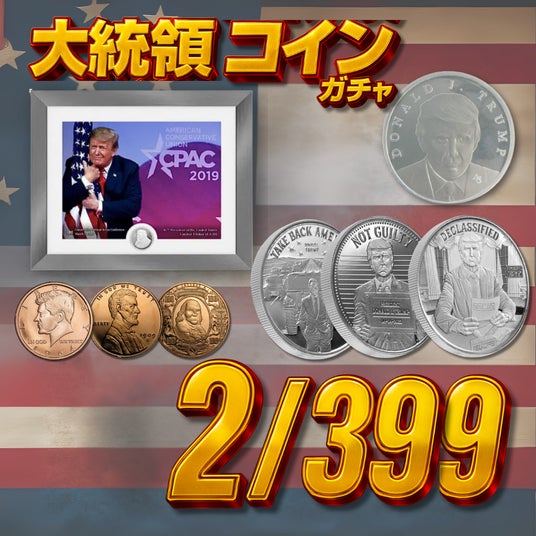 ラスイチ賞:ガチャの最後の1回を引いたお客様には、「ドナルド・トランプ オフィシャル 1オンス純銀ラウンド」が贈られます。