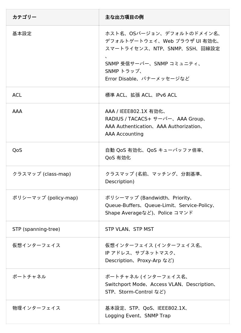 ■ 「Cisco Catalyst 設定仕様書」の出力項目