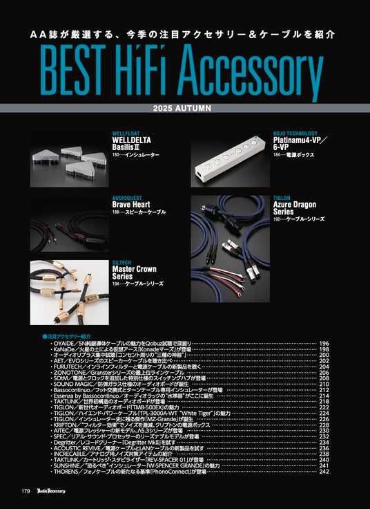 高音質再生を追求するピュアオーディオの専門誌「オーディオアクセサリー」198号の表紙