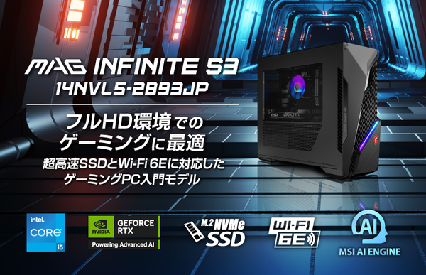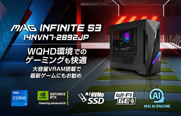 エムエスアイコンピュータージャパンは、8月28日より最新ゲーミングPC「MAG Infinite S3 14NVP7-2891JP」を含む3製品の販売を開始すると発表した。