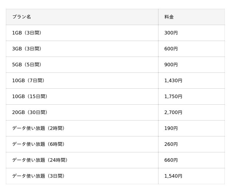■オンライン版「Japan SIM」トッピング