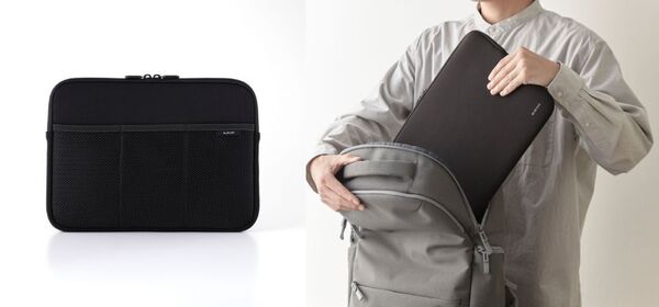 今回登場した新モデルは、用途に応じてメッシュポケット付きタイプやファスナーレスタイプなど多彩なラインアップを展開。ネオプレン素材は厚み3.5mmのストレッチ仕様で、ノートパソコンをしっかり保護する。また、外側の生地には撥水加工が施されており、急な雨からもデバイスを守ることができるという。