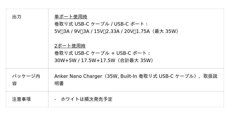 【Anker】Anker初の巻取り式USB-Cケーブル内蔵のUSB急速充電器を販売開始「Anker Nano Charger (35W, 巻取り式 USB-Cケーブル)」
