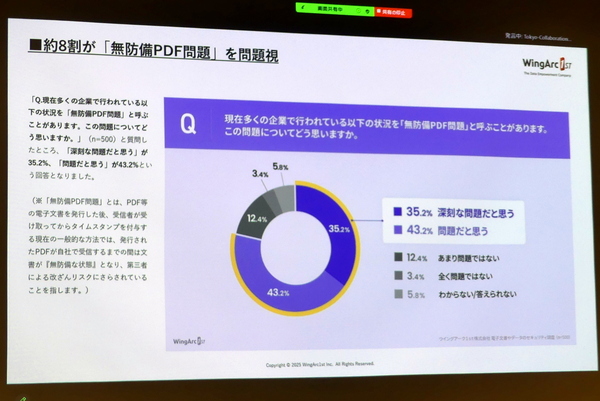 実際、同社の調べでは、企業間取引で扱う電子文書に関して、23.6%が「重要書類のAIによる改善に気づけない可能性があること」を懸念しているという。また、3割以上が「取引先から文書が本物かどうか疑われた」という経験があり、8割以上が「無防備PDFを問題視している」という。