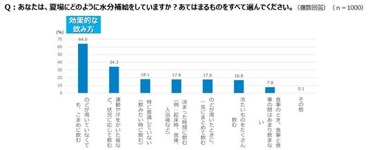 「水分補給」は熱中症対策として浸透しているが、取り入れ方に課題。