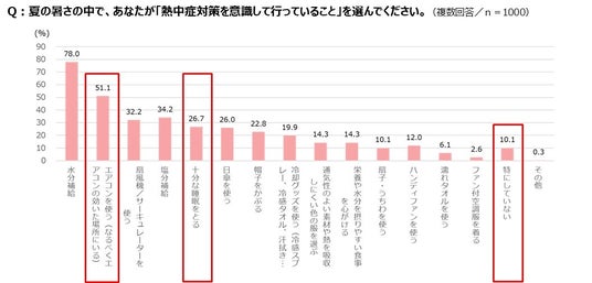 - 熱中症対策として、「エアコンを使う」こと、「十分な睡眠をとる」ことへの意識は低い !?