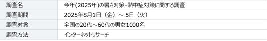 - 対策意識を尋ねると、暑さ対策はしているが熱中症対策の意識は低い。