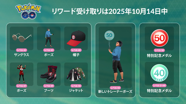 また、10月14日までにレベル50へ到達しておくと、「レベル50ジャケット」など今後は入手不可能になるリワードがゲットできる。目指せそうな人は狙ってみるといいだろう。