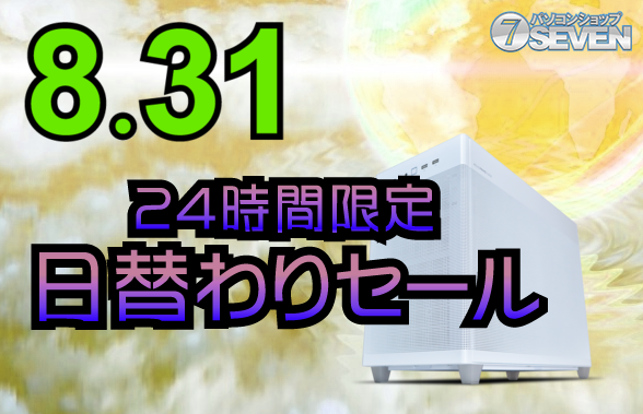 セブンアールジャパンが運営するパソコンショップSEVENは、8月31日の1日限定で特別セールを実施する。この日限りで、最新のゲーミングPCやデスクトップPCが最大5万円オフで購入可能。セールは0:00から23:59まで開催される。