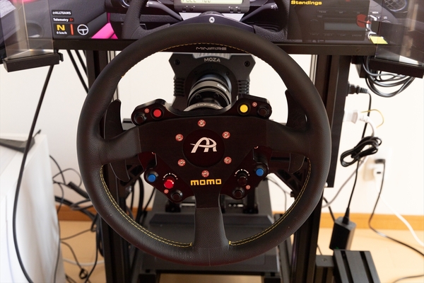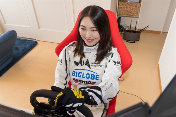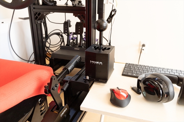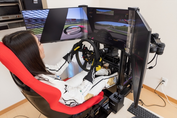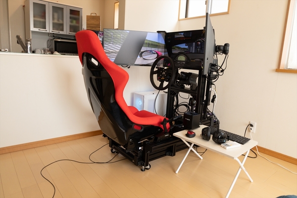 そして驚いたのは、なんとゲーミングPCとともに大型のシミュレーターが設置されていたこと。「今まで、知り合いのショップの本格的なシミュレーターで練習をして、自宅ではプレイステーション5の「グランツーリスモ」を使っていたんですけれど、自宅でも本格的なもので練習したいと思い、5月頃に導入しました」と笑顔で導入の経緯を語る及川さん。