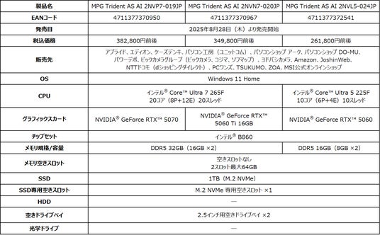 【MPG Trident AS AI 2NVP7-019JP / 2NVN7-020JP / 2NVL5-024JP】