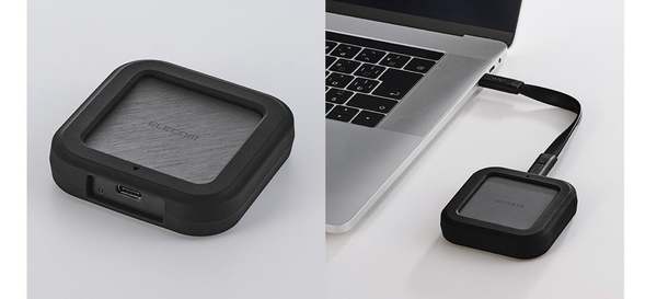 エレコムの新製品ポータブルSSDは、最大読み込み速度3,000MB/s、書き込み最大2,700MB/sを実現する高速データ転送が特徴だ。筐体にはコンパクトなデザインでシリコンカバーが装備されており、振動や衝撃からSSDを保護する設計となっている。また、放熱効率を高めるアルミプレートとIC設計により、ファンレス構造を実現したため、騒音がなく快適に使用できるという。
