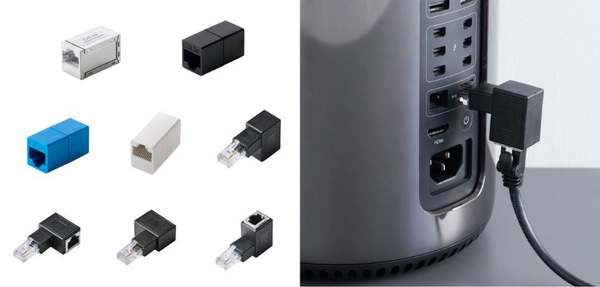 今回登場する製品にはノイズ干渉を防ぐSTPを採用した金属シールド構造のRJ45中継コネクターや、LANポートの向きを変換できるL字変換コネクター、磁石で固定可能な中継コネクターなど多彩なタイプが用意されている。
