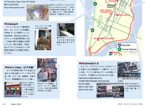 ハードディスクの中をさらってみると、私の雑誌では、「モバイルツアー'98レポート Vol.4 アメリカ電脳ショップガイド ニューヨーク&ラスベガス編」という記事で紹介していて「日本のアニメ系雑誌,およびフィギュア,関連グッズは,日本の地方都市のお店よりも充実」などと書かれている(自分で書いたのだが)。