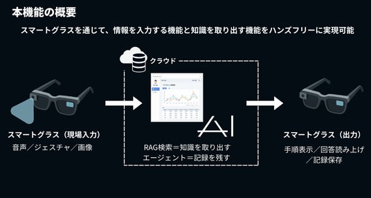 本機能は、「RAGによる情報検索・要約=知識を取り出す機能」と「エージェントによる自動実行・記録=情報を入力する機能」の両面を、スマートグラスを通じてハンズフリーで実現できる点が長所です。