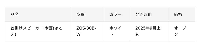 株式会社電響社(大阪市浪速区、代表取締役社長:山下 俊治)は、ZEPEAL(ゼピール)ブランドから、マイク搭載「⾸掛けスピーカー木聲(きこえ)ZQS-30B-W」を2025年9月上旬より発売します。