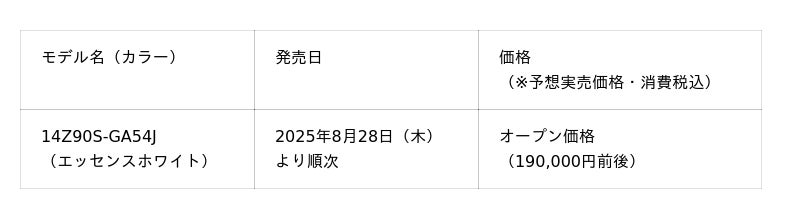 LGエレクトロニクス・ジャパン株式会社(代表取締役:孫 成周(ソン・ソンジュウ)、本社:東京都中央区)は、モバイルノートパソコンシリーズ「LG gram」の新モデル「14Z90S-GA54J」を、本日2025年8月28日(木)より一部販売店にて順次発売します。