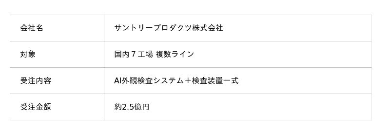 製造業に特化したAIソリューションを提供する株式会社VRAIN Solution(本社:東京都中央区、代表取締役社長:南塲勇佑、以下「当社」)は、サントリーホールディングス株式会社のグループ会社であるサントリープロダクツ株式会社(以下、「サントリープロダクツ(株)」)より、AI外観検査システムを受注いたしましたので、お知らせいたします。なお、2026年2月期業績予想には織り込んでおります。