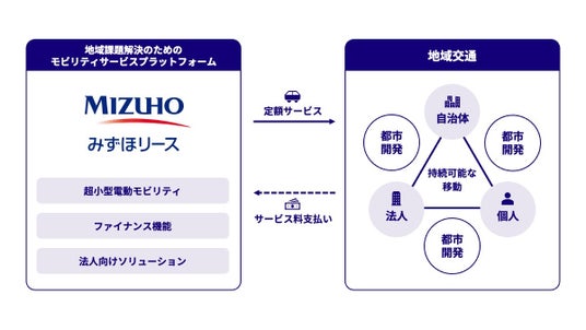 みずほリースは地域の交通インフラや環境保全といった課題に対応する「地域課題※1解決の為のモビリティサービスプラットフォーム」の構築を目指し、持続可能な地域の共創を推進します。
