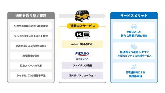 みずほリースはコーポレートベンチャーキャピタルファンド「未来創造投資事業有限責任組合」を通じてKGモーターズへ出資し、両社は都市部・地方を問わず、多様な移動課題の解決に取り組みます。