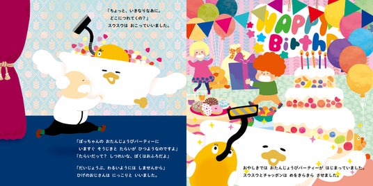 掃除機のスウスウとバスタブのチャッポンは毎日のお仕事に不満が爆発! 家出をしたふたりが初めての家の外の世界を大冒険します。