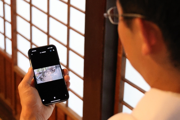 これらの課題を解決すべく、キヤノンS&Sの支援のもと、ネットワークカメラによる防犯システムを導入。重要文化財に侵入者が近づくと、音と光が連動したストロボサイレンが発報し、管理者のスマートフォンにアラート通知が飛ぶ仕組みを構築した。また、カメラに搭載されたAIベースの分析機能が、高精度に「人」を検知・追跡する。結果、休日・昼夜問わず2~3日に1回あった誤報は、月1回程度にまで改善している。