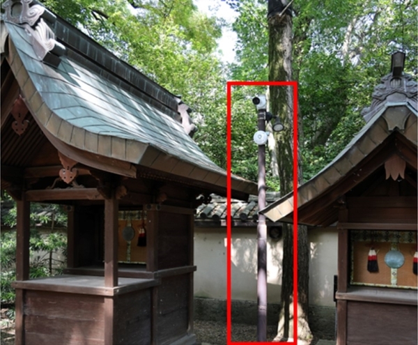 平野郷の氏神として地域共同体の中心的な役割を担い、夏にはだんじり祭りも開催される杭全神社。一方で、地域のつながりの希薄化や職員の不足によって、重要文化財である本殿などの保護や防犯対応に課題を抱えていたという。赤外線センサーを用いたシステムを運用していたが、木の葉の揺れや小動物の通過などに反応して誤検知が多く、遠隔での映像確認ができないため職員の負担が大きかった。
