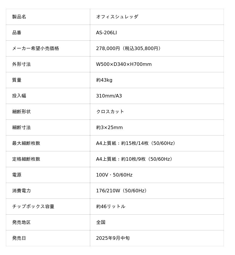 ナカバヤシ株式会社(本社:大阪市中央区、社長:中林一良)は負荷状況を確認できるLEDインジケーターを搭載した"ちょうど良い"サイズのオフィスシュレッダ「AS-206LI」を全国で2025年9月中旬より順次発売します。