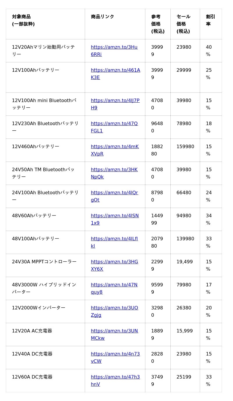 感謝の気持ちを込めて、お得なリン酸鉄バッテリーと関連製品をご用意!新製品も参加!