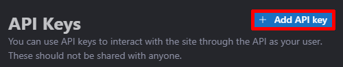 画面を下にスクロールし、「API Keys」セクションにある青い「+ Add API key」ボタンをクリック。