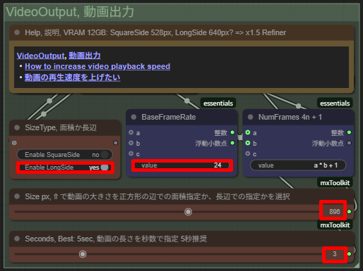 「Size Px」では動画のサイズを指定。長方形の場合は長辺の値、今回は896を入力。