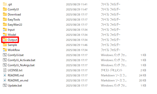 なお、生成された動画のデータは「Output」フォルダー内に保存されている。