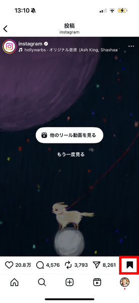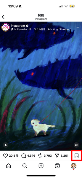 見ていて気になった投稿は、保存できる。右下の「しおり」の形をした保存ボタンをタップすると、白かったボタンが黒くなり、保存できる。