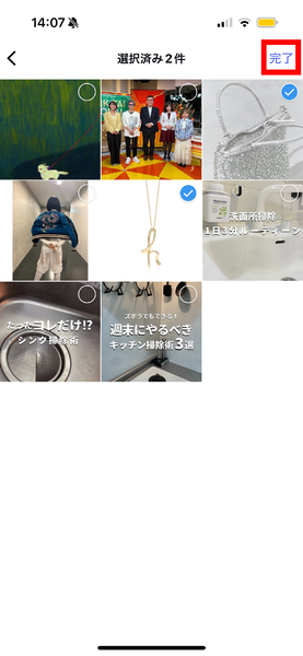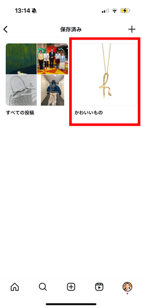 また、保存した投稿は、カテゴリー分けをすることもできる。+マークをタップし、コレクション名を入力しよう。コレクションに追加したい保存投稿を選択し、「完了」をタップで追加できる。