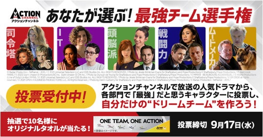 日本唯一の(*)アクション海外ドラマ専門チャンネル「アクションチャンネル」(AXN株式会社、本社:東京都渋谷区、代表取締役社長 大園天樹)は、10・11月放送の「2ヵ月連続!最強チーム・アクション特集」に先駆け、視聴者参加型の投票企画「あなたが選ぶ!最強チーム選手権」を本日より特設サイトにて開始いたしました。