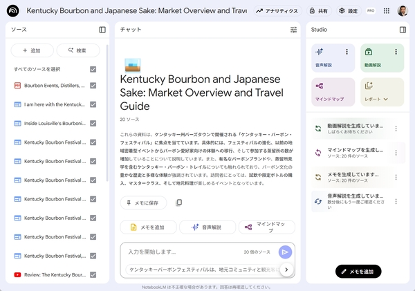 例えば、大阪万博に関する情報をまとめておき、自分だけのガイドブックにしておくこともできる。基本的な使い方は「第19回 自分専用のAIリサーチアシスタント「NotebookLM」で大阪・関西万博のおすすめルートを調べる」で紹介しているので参照して欲しい。