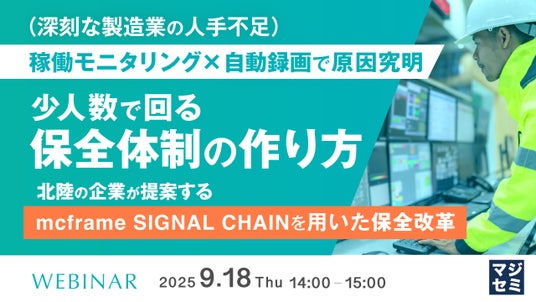マジセミ株式会社は「(深刻な製造業の人手不足)稼働モニタリング×自動録画で原因究明、少人数で回る保全体制の作り方」というテーマのウェビナーを開催します。